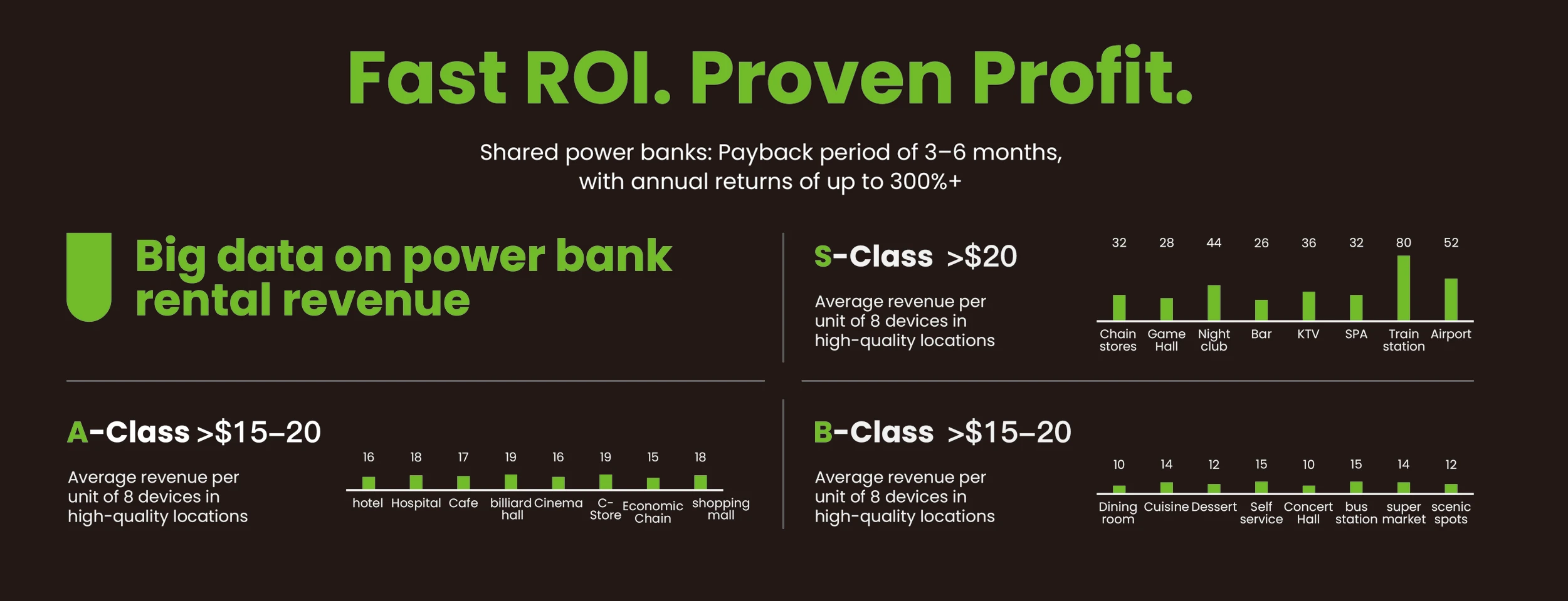 Which high-traffic scenarios deliver the best ROI for portable phone charging stations?