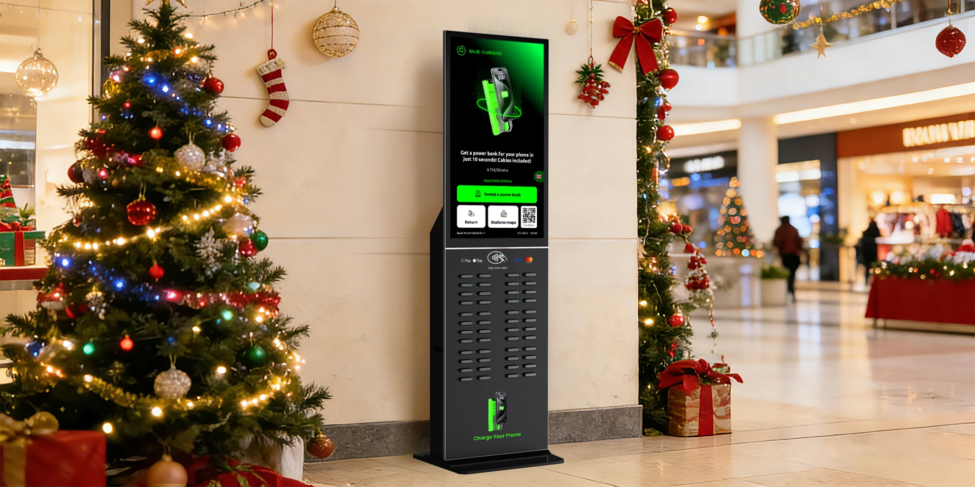 Smartphone charging stations support cross-location returns, allowing users to rent at airports, shopping malls, or transport hubs and return the power bank flexibly across cities or regions. Users are no longer restricted to a single rental location and can plan their journey in advance, returning the power bank at a nearby location of the same brand at their destination.